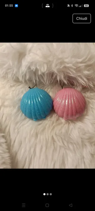 Set di due lucidalabbra a forma di conchiglia. - Un lucidalabbra al gusto di fragola. - Un lucidalabbra al gusto di pesca.