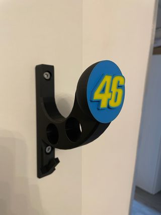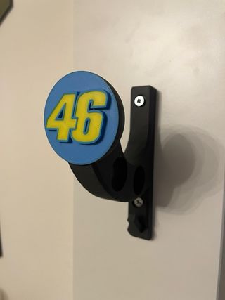 Supporto da parete per casco con logo VR46. - Design a muro. - porta anche chiavi e giacca