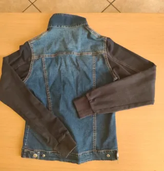 Giacca in denim con mamiche in tessuto Australian for Roy Rogers taglia 40 italiana Spalle cm 34 lunghezza giacca 49 cm #australian #royrogers #giaccaindenim #madeinitaly #strwetwear #australian&royrogers #taglia40 - Chiusura frontale con bottoni. - Tasche sul petto. - Polsini e fondo in maglia elasticizzata.