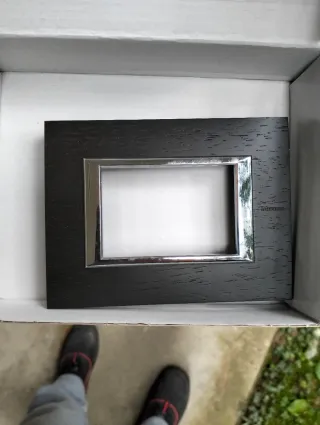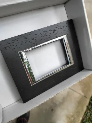 Placche BTicino con finitura effetto legno scuro e cornice cromata. - Design moderno ed elegante. - Materiali di qualità. Totale di 8 pezzi.