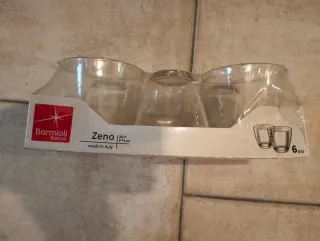 Set di sei bicchieri in vetro trasparente, perfetti per ogni occasione. - Design elegante e moderno. - Adatti per bevande calde e fredde. - Facili da pulire.