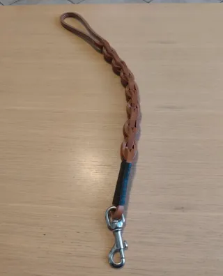 guinzaglio manigliotto in pelle intrecciata nuovo mai utilizzato . specificamente progettato per cani di grossa taglia per mantenerli sotto controllo a breve distanza. Caratteristiche Principali Materiale: Realizzato in pelle o cuoio di alta qualità, spesso caratterizzato da una lavorazione a "tripla treccia" che ne aumenta la robustezza e la durata. Design: Presenta un'impugnatura a passante (maniglia) a un'estremità e un moschettone metallico all'altra per l'aggancio rapido al collare o alla pettorina. Utilizzo: È ideale per situazioni in cui è necessario un controllo stretto, come in luoghi affollati o durante l'addestramen