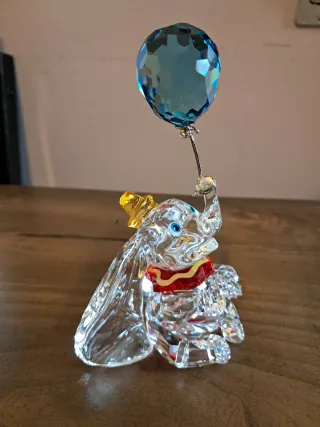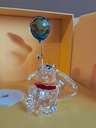 Bellissimo elefantino Dumbo in cristallo Swarovski, con palloncino azzurro. Un pezzo da collezione che aggiunge un tocco di magia. - Realizzato in cristallo trasparente. - Dettagli colorati sul cappello e sul colletto. - Palloncino in cristallo azzurro sfaccettato.