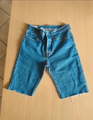 Shorts Levis 501 W 27 ricavato da jeans lungo. Vita con jeans piatto cm 37 lunghezza jeans 54 #levis #levis501 #levisw27 #shortlevis - Taglio dritto. - Vita alta. - Chiusura con bottoni. - Fondo sfrangiato.