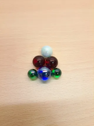 Set di bilie colorate per giocare. In buone condizioni. - 1 biglia blu - 2 biglie rosse - 2 biglie verdi - 1 biglia bianca