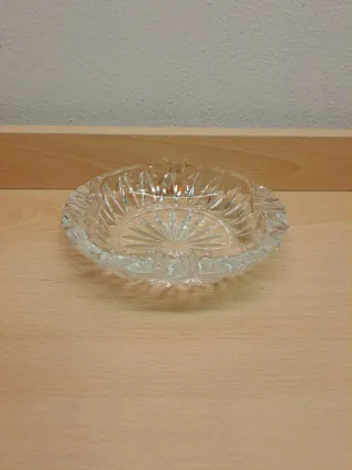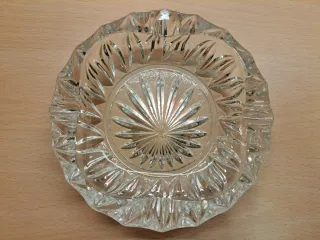 Bellissimo soprammobile vintage! Può essere utilizzato anche come posacenere o svuotatasche. Forma rotonda con bordo a punte. Lavorazione a punta di diamante. Presenta un motivo geometrico in rilievo che riflette la luce. Molto spesso e quindi pesante. Alcune punte del contorno sono un po' consumate. Dimensioni: circa 14,4x14,4x4,2 cm Peso: circa 582 grammi