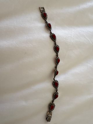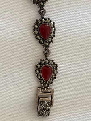 Elegante bracciale vintage con pietre di corniola naturale. - Realizzato in argento. - Design con gocce di corniola. - Chiusura a scatto.