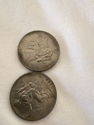 Due monete da 1 Lira italiana con l'anno 1922. - Dritto: Figura femminile con fascio. - Rovescio: Aquila. - Anno: 1922 necessità pulizia