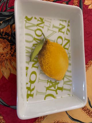 Deliziosa ciotolina in porcellana con un vivace disegno di limone. - Motivo a limoni e lettere verdi. - Design vintage.ideale per forno e lavastoviglie