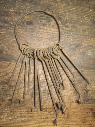 Set di 15 chiavi scheletriche grimaldelli antiche, probabilmente risalenti al 1800, realizzate da un fabbro. - Oggetti da collezione. - Ideali per appassionati di storia e artigianato.