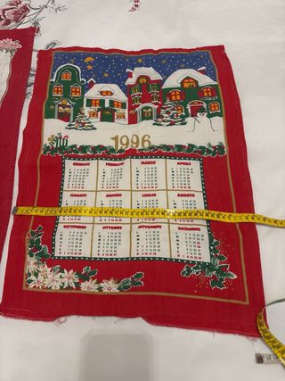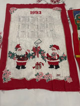 Simpatico calendario vintage del 1993, perfetto per un tocco nostalgico. - Realizzato in cotone. - Design con Babbo Natale e decorazioni natalizie. - Motivo floreale ai bordi.portano solo quella scucitura in fondo