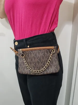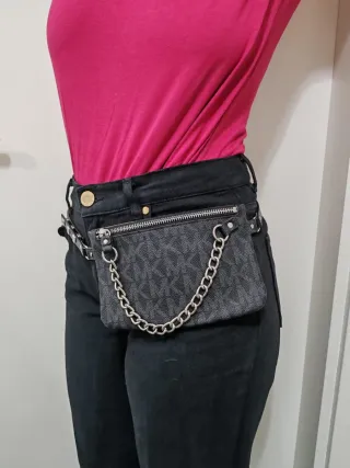 Marsupio Michael Kors in ottime condizioni, con dettagli in argento. - Fantasia monogram. - Tracolla regolabile. - Zip superiore. - Catena decorativa.