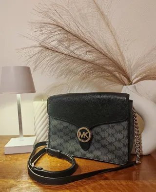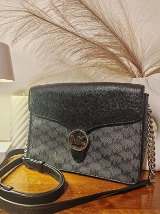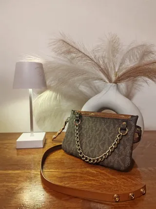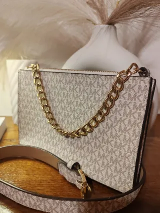 Elegante borsetta Michael Kors, perfetta per ogni occasione. Un accessorio che aggiunge un tocco di classe al tuo outfit. - Design monogrammato distintivo. - Dettagli con catena dorata. - Tracolla regolabile in pelle.