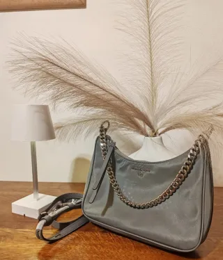 Borsa a spalla Michael Kors in un elegante colore grigio. Presenta una catena metallica che aggiunge un tocco di stile. - Materiale: Tessuto - Dettagli: Catena metallica - Design: A spalla