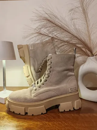 Stivaletti Steve Madden NY Tanker numero 40 in ottime condizioni, singolo diffetto piccolissima macchia mostrata nell ultima foto, del tutto irrilevante. Comode e di ottima qualità, ideali per un look sempre alla moda, modello iconico e ricercato. - Tomaia in camoscio - Suola chunky - Dettaglio logo sul lato