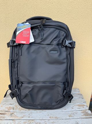 Zaino sottovuoto nuovo con etichetta. modello simil-airback Molto utile come valigia da cabina, metti tutti i vestiti in uno scomparto e poi estrai l'aria, occupa meno spazio con il vano sottovuoto, pratico e compatto Tessuto impermeabile Oxford Dimensioni: 49x32x15 cm espandibile a 49x32x20 cm. Ha molte tasche, alcune a tenuta stagna, altre a rete. Scomparto per tablet e PC. Tasca nascosta e lucchetto integrato. Ha ancora le etichette esclusa pompa 10€ in piu