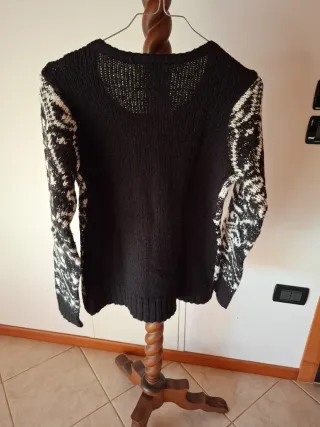 Maglioncino da donna con fantasia geometrica. - Fantasia a rombi e fiocchi di neve. - Scollo rotondo. - Maniche lunghe. Taglia s bianco e nero con paiettes piazza italia spalle 38cm lunghezza 48cm