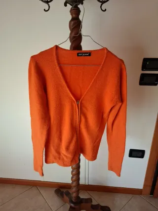 Cardigan con chiusura a zip. - Tessuto lavorato. - Scollo a V. Misure 38cm spalle 54cm lunghezza dorso Da lavare tenuto sempre in armadio