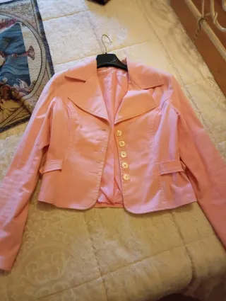 Giacca leggera dal taglio classico. - Maniche lunghe. - Colletto ampio. - Chiusura con bottoni. Misure 45cm spalle 50cm torace 62cm manica Potrebbe essere anche una camincia pesante ma è foderata di raso