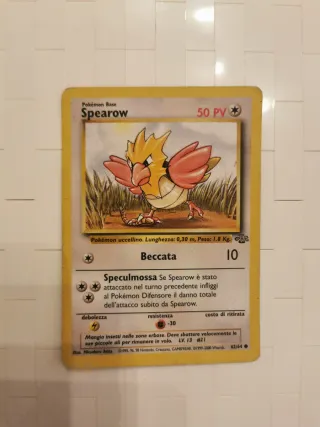 Carta collezionabile Pokémon Base di Spearow. - Attacco: Beccata - Costo di ritirata: 10 - Debolezza: 4 - Resistenza: -30 - Livello: 13 - Numero carta: 62/64 In ottime condizioni