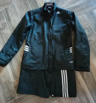 Giubbotto originale Adidas in colore nero. - Taglia 42/44. - Design con le classiche tre strisce Adidas sui lati. Tramite cerniera si trasforma da giubbotto a cappotto Soffice pile interno Tessuto anti strappo Molto confortevole