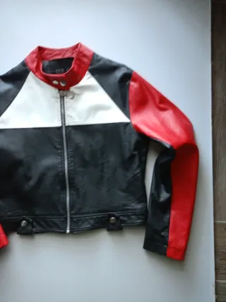 Giubbino ecopelle nero, rosso, bianco Tg M