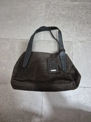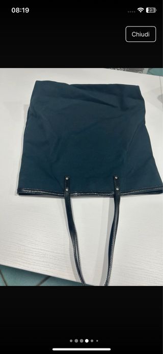 Borsa a spalla Prada in tessuto nero, con dettagli in pelle e fibbia metallica. - Chiusura con patta. - Tasche frontali. - Tracolla regolabile. la borsa è un po’ strappata si deve portare da un calzolaio e la a giusta X il resto è perfetto