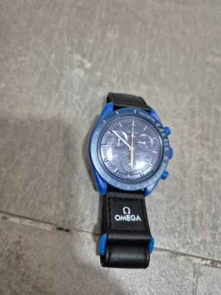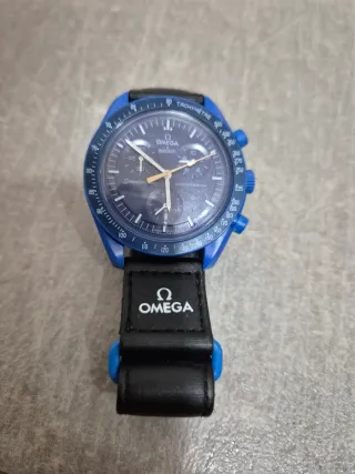 Orologio Omega Swatch MoonSwatch. - Cassa blu. - Cinturino nero con logo Omega.