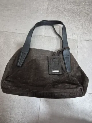 Borsa elegante in pelle marrone con finitura effetto coccodrillo. - Materiale: Pelle scamosciata con stampa effetto coccodrillo. - Manici in pelle nera. - Dettaglio con targhetta metallica.