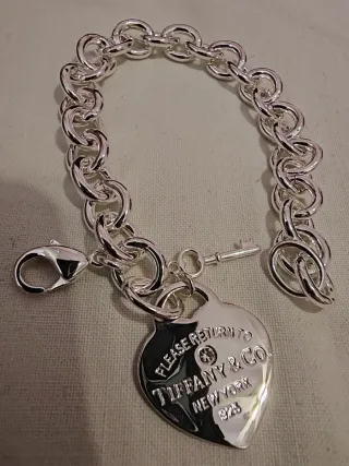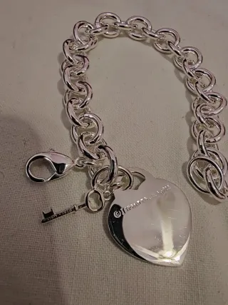 Elegante bracciale con ciondolo a forma di cuore. - Design a catena spessa. - Charm a forma di cuore con incisioni. - Chiusura a moschettone.