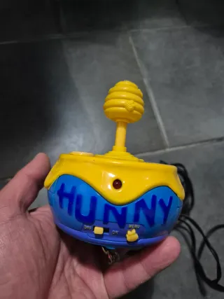 Un divertente funzionante gioco per TV a tema Winnie the Pooh. - Design colorato a forma di vaso di miele. - Joystick a forma di favo con ape. - Pulsanti ON/OFF e MENU.