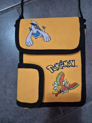 Piccola borsetta gialla con simpatici personaggi Pokémon. Nintendo rarissima - Raffigurazione di Lugia sulla patta superiore. - Logo Pokémon e Ho-Oh sul corpo della borsa. - Bordo nero decorativo.