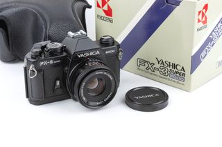 Yashica FX-3 Super 2000 + Yashica ML 50mm 1:1.9 - kit Descrizione dettagliata: fotocamera reflex 35mm manual focus esemplare in eccellenti condizioni generali meccanica in ordine, perfettamente funzionante in tutte le sue parti tempi corretti, esposimetro integrato reattivo e preciso esteticamente in ottimo stato con lievissimi segni d'uso obiettivo con lenti pulite senza graffi o muffa, perfettamente funzionante presenti alcuni lievi residui di pulviscolo ininfluenti cinghia, tappo lente anteriore, filtro, borsa pronto originale guarnizioni nuove, batterie incluse
