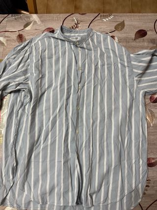 Camicia a maniche lunghe con colletto alla coreana. - Fantasia a righe orizzontali. - Chiusura con bottoni. - Logo Giorgio Armani sul colletto.