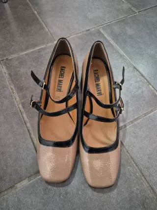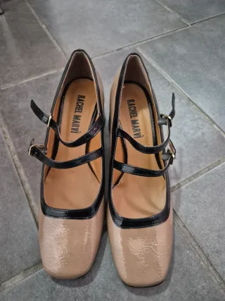 Eleganti scarpe modello Mary Jane con cinturino. - Toma quadrata. - Dettagli a contrasto neri. - Materiale verniciato lucido.