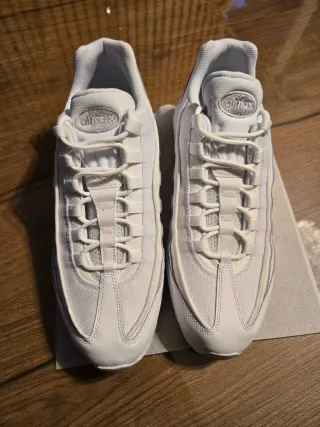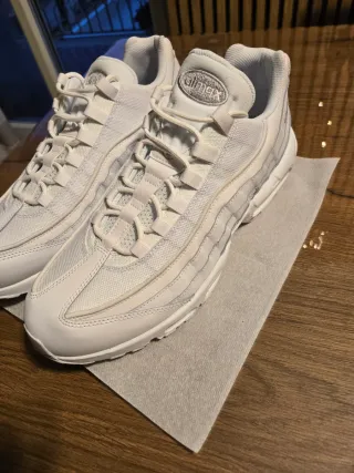 Scarpe Nike Air Max 95 in colore bianco. Vendo nike air max 95, nuove, mai indossosate, comprate e posate per taglia sbagliata. Colore bianco, veramente bellissime Numero 48,5 ma vanno bene anche per taglie simili, comodissime Pagate 160€ - Design iconico. - Tomaia in mesh e pelle. - Logo Air Max sulla linguetta.