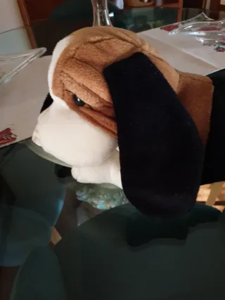 Simpatico peluche a forma di cane beagle, perfetto per gli amanti degli animali. - Morbido al tatto. - Colori classici del beagle: bianco, nero e marrone.