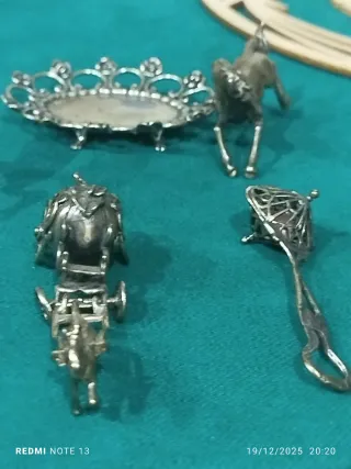 Set di cinque miniature in argento, perfette per collezionisti o come decorazione. Peso 91 grammi. - Design vintage dettagliato. - Materiale: argento.