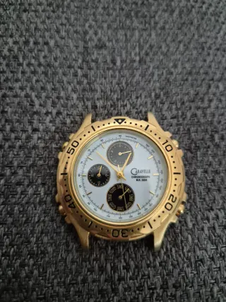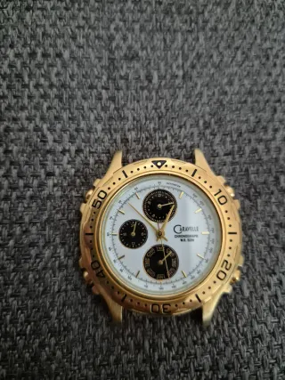 Orologio da polso da cambiare batteria marca Caravelle by Bulova cassa color oro e quadrante bianco. Presenta dettagli eleganti e un design classico. - Modello Chronograph. - Resistente all'acqua fino a 50 metri (W.R. 50M). - Lunetta con tachimetro.