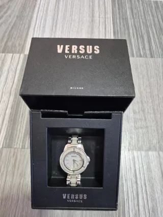 Elegante orologio da polso Versus Versace con un design moderno e raffinato.da cambiare batteria - Cassa e bracciale in metallo con finitura argento. - Quadrante bianco con dettagli a contrasto. - Lunetta decorata con inserti bianchi.