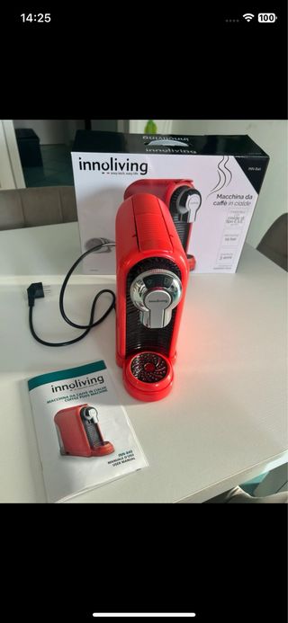 Macchina da caffè Inno-living di colore rosso. - Design compatto ed elegante. - Ideale per capsule. - Manuale d'uso incluso.