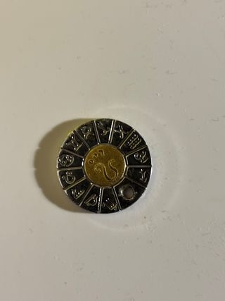 Medaglione con simboli zodiacali e il segno del Leone al centro. - Design a ruota con dodici simboli. - Dettagli in oro e argento.