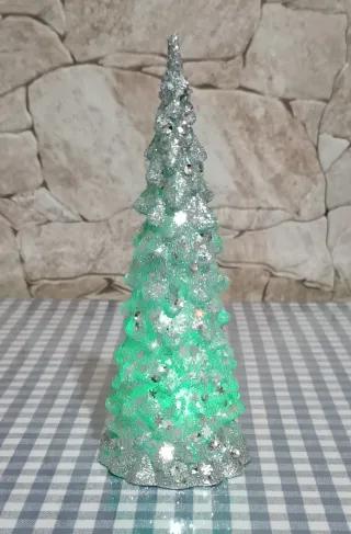 Un piccolo albero di Natale decorativo, perfetto per aggiungere un tocco festivo alla tua tavola o mensola. Le luci LED interne creano un'atmosfera magica. -Misure: diametro 7 cm e altezza 17 cm. - Design a forma di albero di Natale. - Finitura scintillante con glitter. - Luci LED integrate. - Batterie incluse
