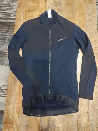 Giacca da ciclismo Rockrider. - Design bicolore con pannelli neri e blu. - Zip frontale. - Collo alto.