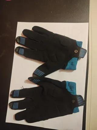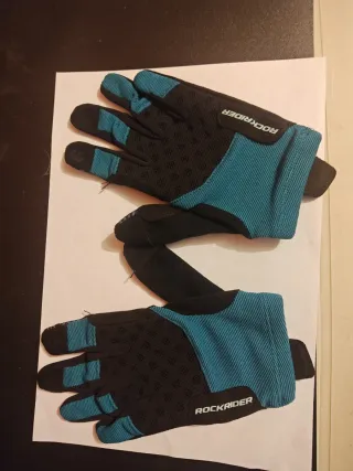 Guanti da mountain bike per bambino, ideali per le avventure su due ruote. - Colore nero con dettagli blu. - Polsino elasticizzato con chiusura a bottone. - Inserti antiscivolo sulle dita.