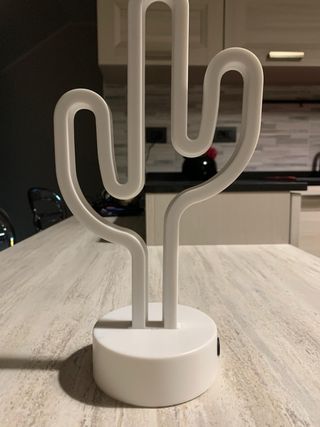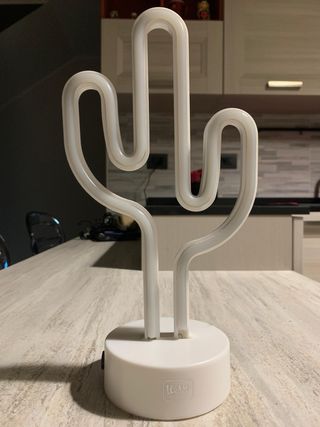 Lampada a forma di cactus, un tocco di design per la tua casa. - Base rotonda bianca. - Forma stilizzata di cactus. Con cavo