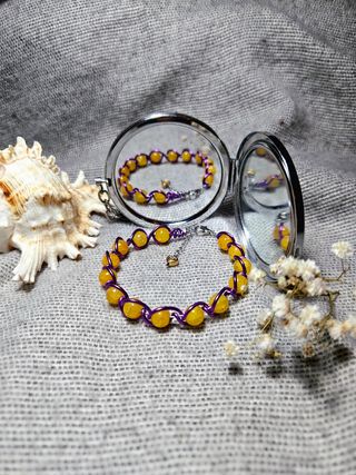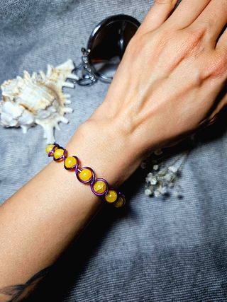 Bracciale artigianale perline viola e gialle
