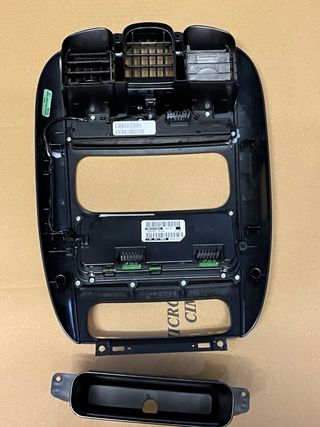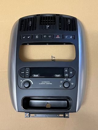 Cruscotto per Chrysler Voyager. - Pannello centrale con bocchette aria. - Pulsanti per sedili riscaldati e hazard. - Display per controllo clima automatico. - Manopole per regolazione temperatura e ventola. - Vano portaoggetti.