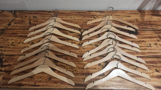 Set di grucce per abiti da bambino. - Realizzate in legno. - Gancio in metallo argentato.