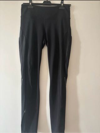 Leggings sportivi neri, ideali per l'allenamento. - Tessuto confortevole e traspirante. - Zip alla caviglia per una vestibilità personalizzata. - Dettagli riflettenti per una maggiore visibilità.